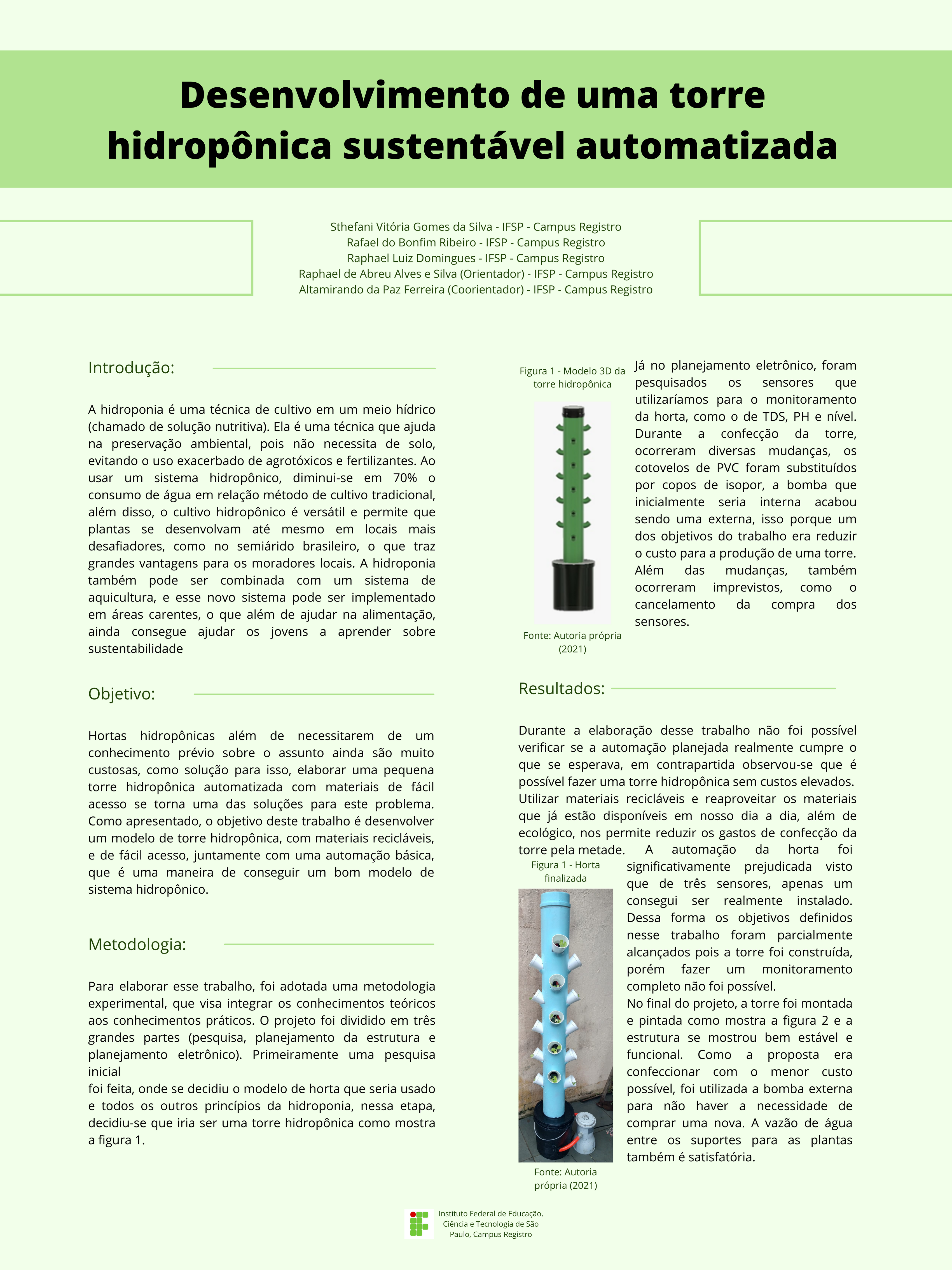 Palavras-chave: torre hidropônica, automação, sustentabilidade