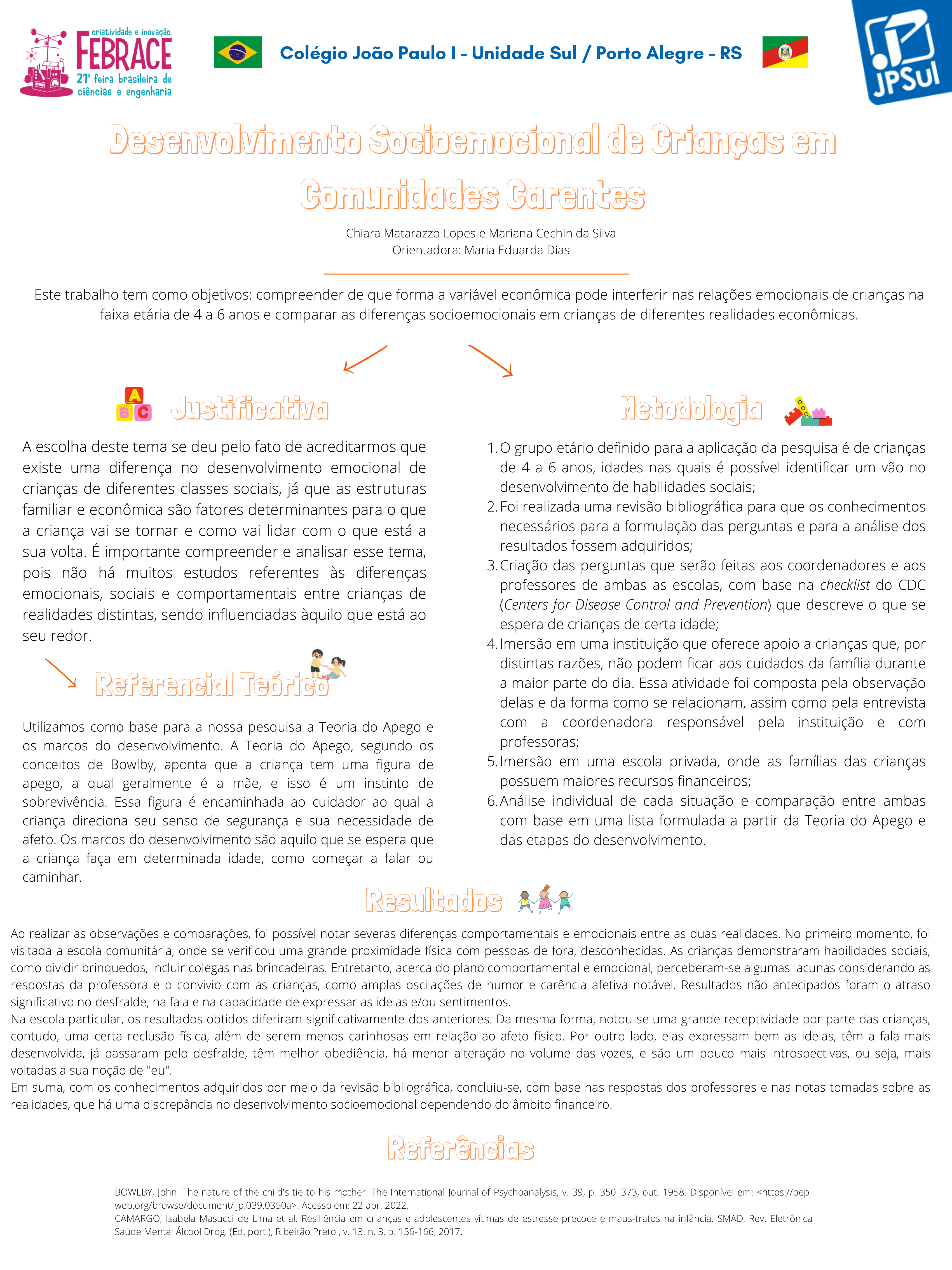 Palavras-chave: Crianças , Desenvolvimento Emocional , Padrão de Vida