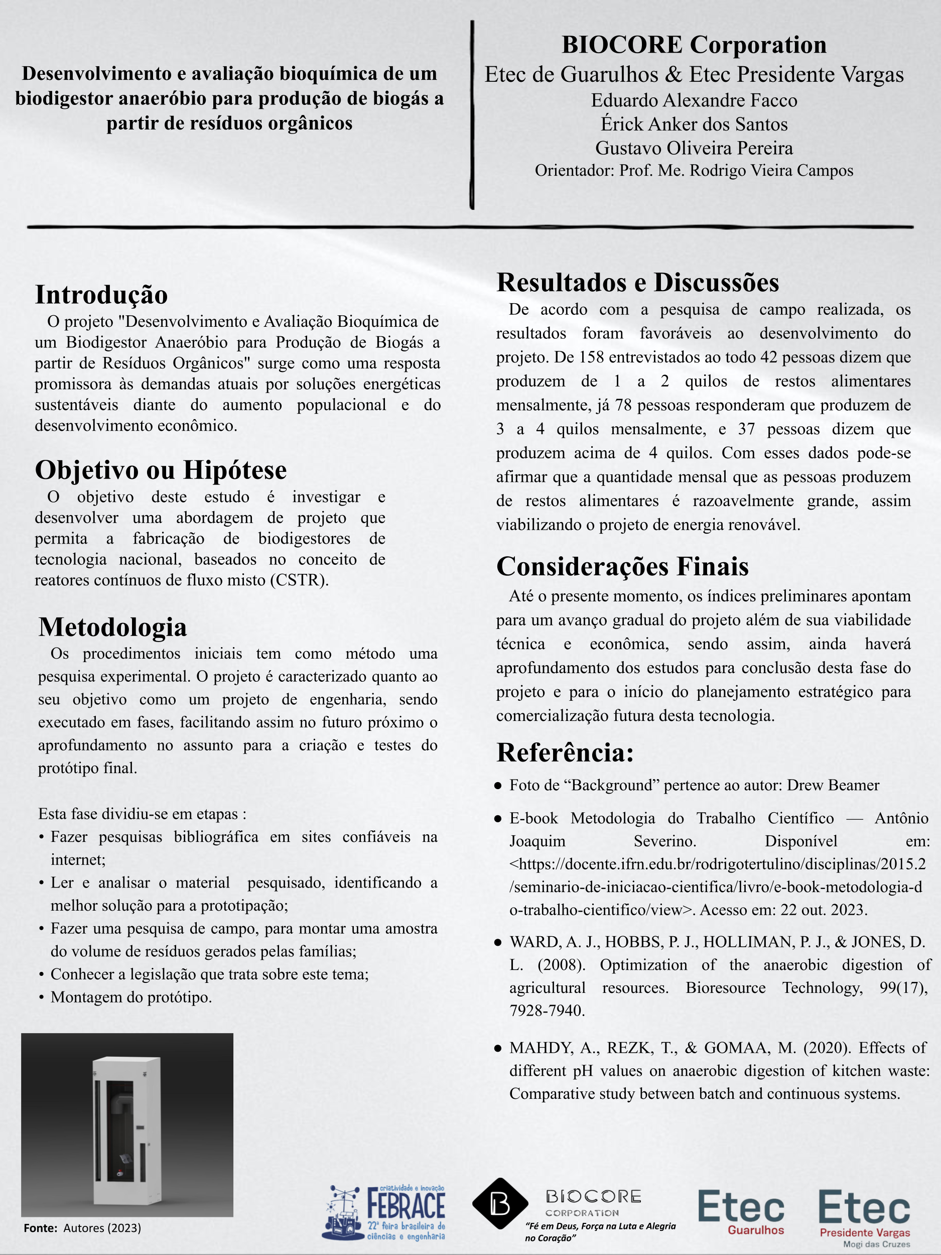 Este estudo foca no desenvolvimento de um biodigestor de reator com tanque agitado de fluxo misto eficiente e compacto com o objetivo de produzir como produto bruto o biogás e, com o sistema de filtragem, refiná-lo para obter biometano, a partir de resíduos orgânicos. O biogás é uma mistura gasosa principalmente composta por metano e dióxido de carbono, obtida através da decomposição anaeróbica de matéria orgânica, com a participação de bactérias específicas. Essa iniciativa é de extrema relevância, pois o biogás se estabelece como uma fonte de energia renovável e sustentável, valorizando resíduos orgânicos que, em circunstâncias normais, seriam descartados e contribuindo para a redução significativa das emissões de gases de efeito estufa. A abordagem envolve a implementação de ações concretas no desenvolvimento do sistema de biodigestão, acompanhadas de uma análise constante dos resultados obtidos e de ajustes na metodologia, se necessário. O processo de biodigestão anaeróbica se divide em quatro etapas distintas: hidrólise, acidogênese, acetogênese e metanogênese. Os resultados esperados desse estudo incluem a criação do sistema de biodigestão anaeróbica para uma produção eficiente e sustentável de biogás, bem como a aplicação prática dessa tecnologia em escala real. O objetivo é alcançar um sistema que compreenda o processo bioquímico envolvido, demonstrando sua viabilidade e eficácia na produção de biogás a partir de resíduos orgânicos.