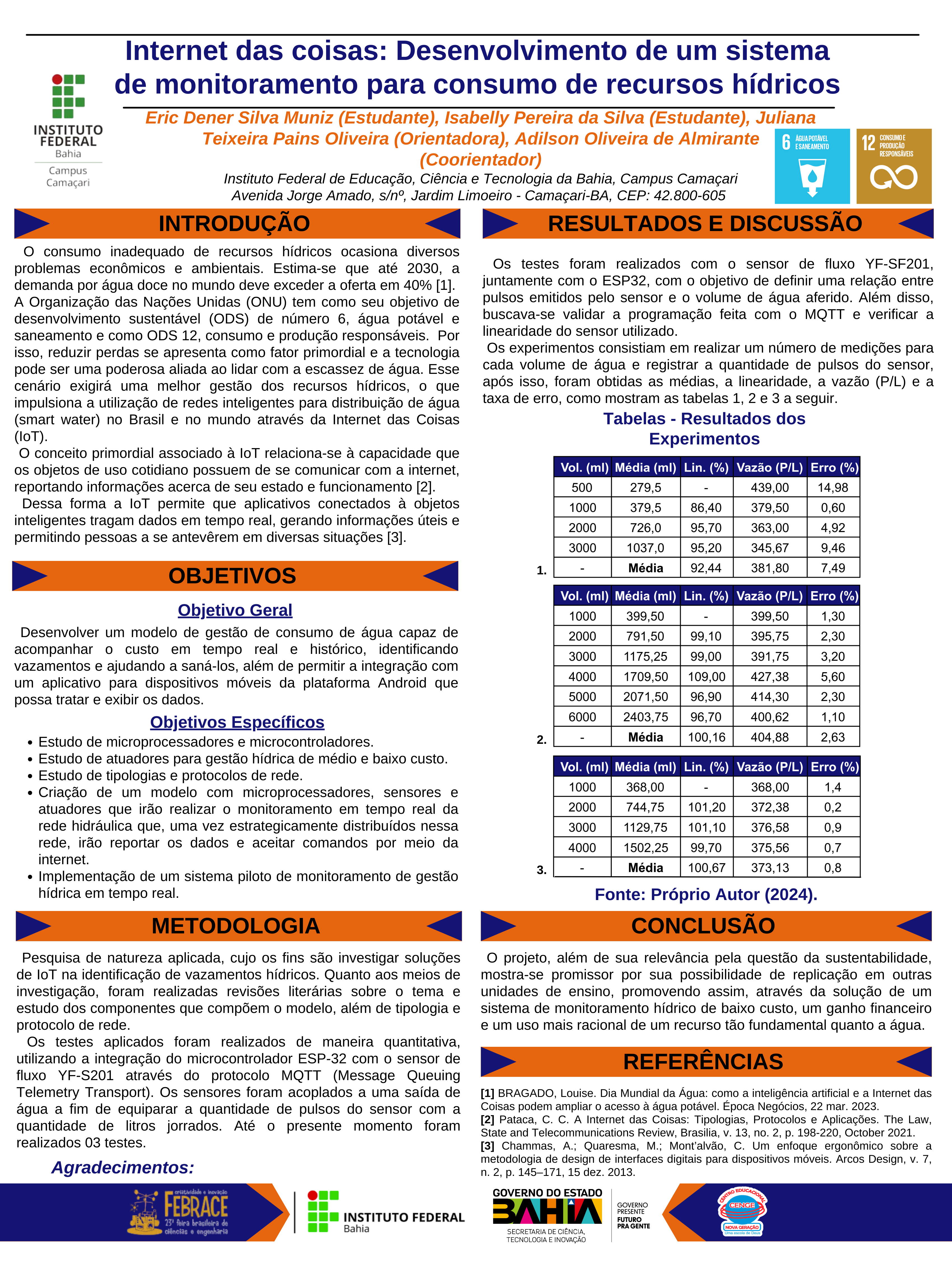 Palavras-chave: Internet das Coisas, Gestão hídrica, Sensores de baixo custo